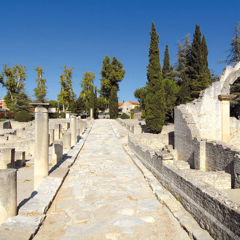 Les deux principaux sites archéologiques : Puymin et La Villasse, témoignent de l’importance de la cité romaine. Vous y observez des mosaïques, des rues antiques et des structures urbaines remarquablement conservées.Le théâtre antique, encore utilisé aujourd’hui, offre un cadre spectaculaire face au Mont Ventoux, et cette perspective renforce le lien entre patrimoine historique et paysages provençaux.